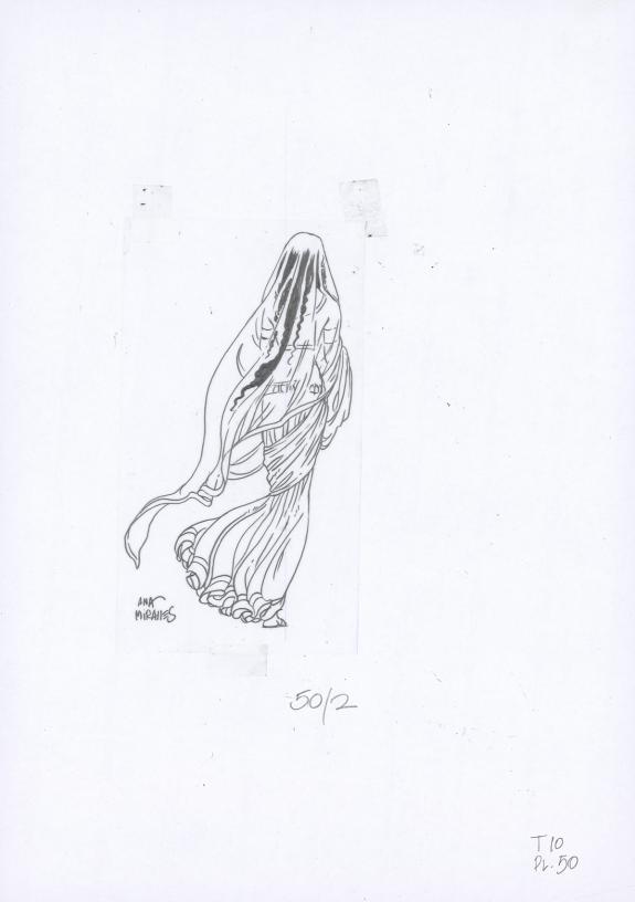 Planche originale n°50 accompagnée de ses 8 étapes préparatoires à la mine de plomb sur calque