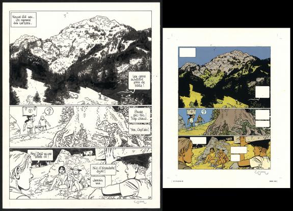 Planche originale n°24 accompagnée de sa mise en couleurs