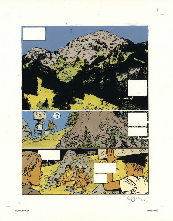 > Catalogue > Cosey > Album(s) sans série > Yiyun > Planche originale n°24 accompagnée de sa mise en couleurs