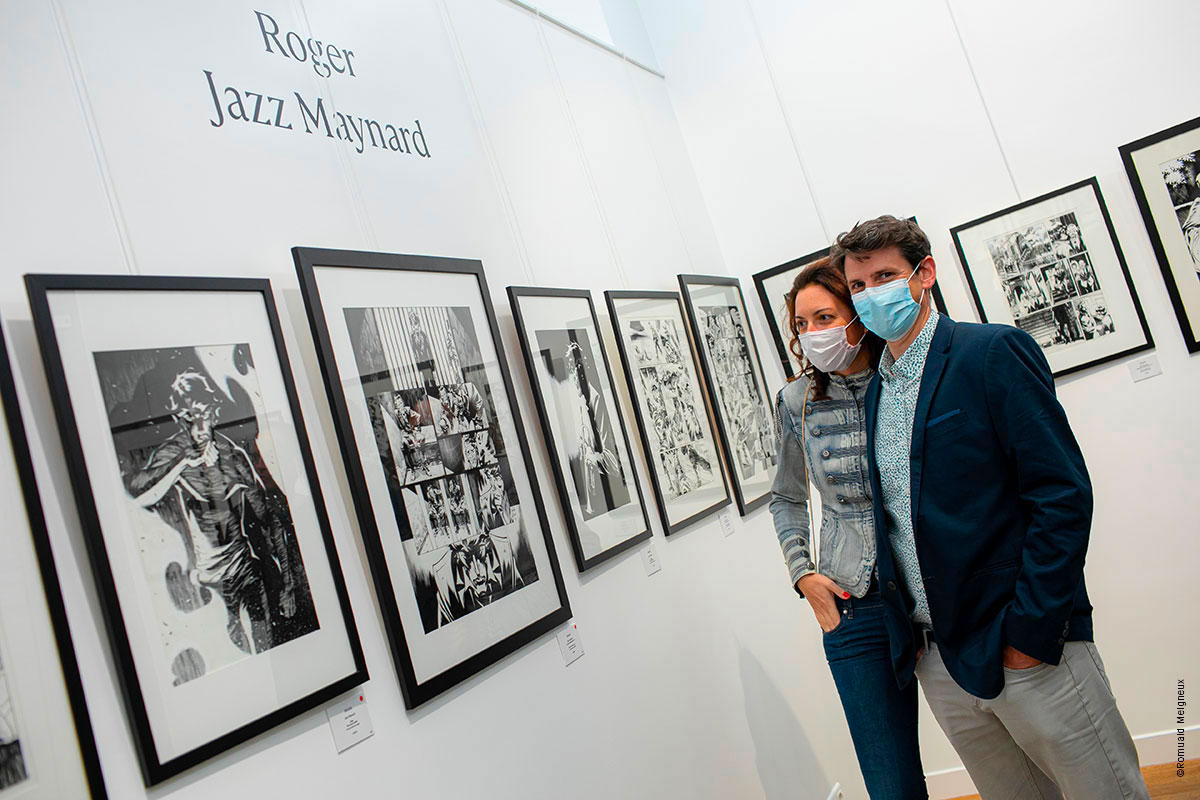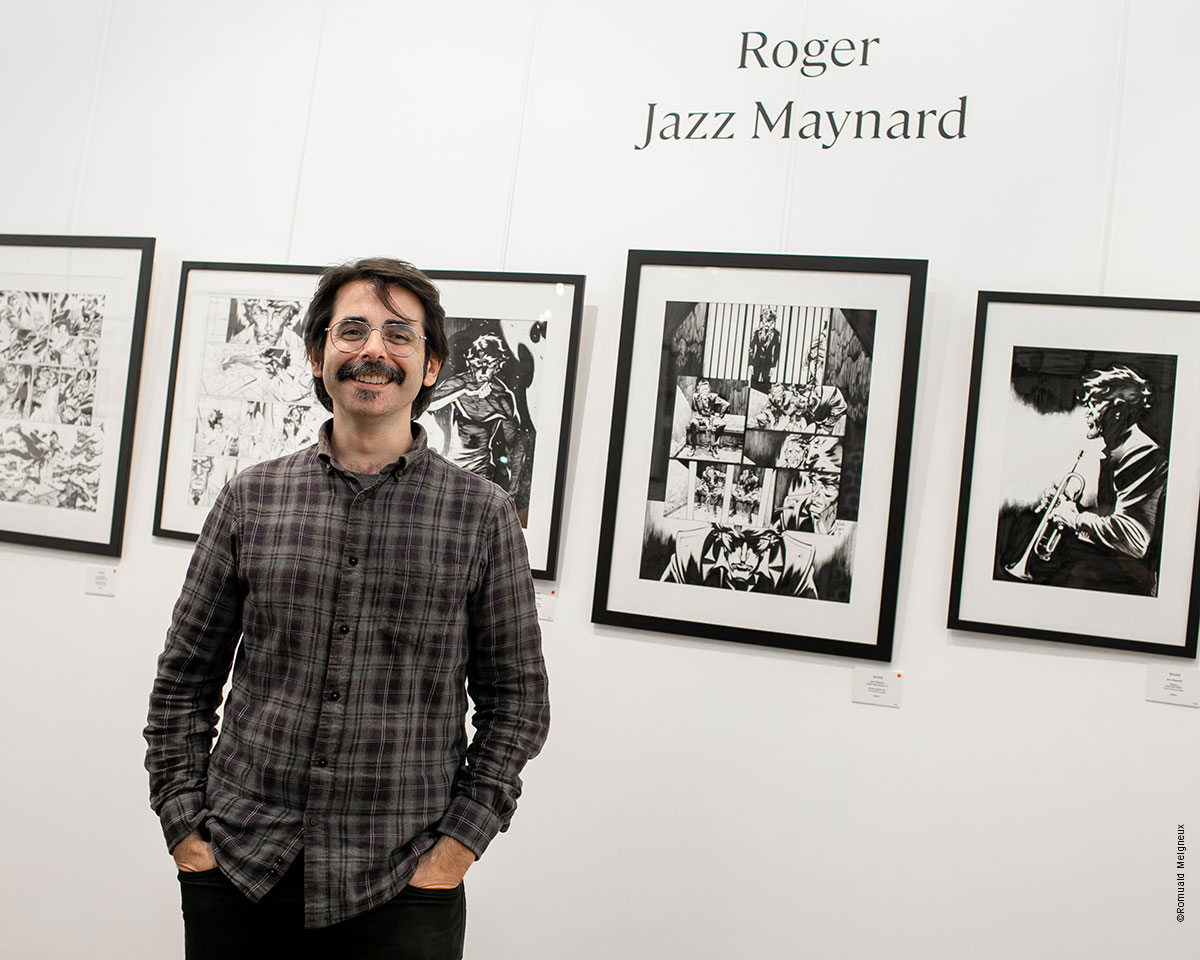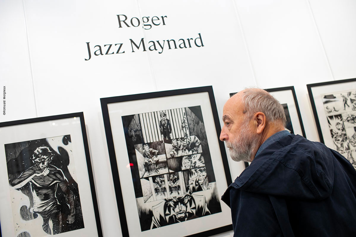 Après sept albums à succès, l’exposition revient sur l’une des meilleures séries noires de ces dernières années et présente près de quatre-vingts planches, couvertures et illustrations originales en noir et blanc de Jazz Maynard. Ce polar au rythme effréné nous plonge au cœur des aventures trépidantes de Jazz Maynard, trompettiste virtuose et cambrioleur hors pair, au cœur du quartier populaire d’El Raval à Barcelone. Véritable orfèvre du noir et blanc, Roger dépeint les méandres de la pègre catalane en faisant preuve d’une maîtrise exceptionnelle de l’encrage et de la lumière. Son sens inné du mouvement et du découpage offre de somptueuses planches, autant pour les bagarres dantesques que pour les atmosphères typiques des clubs de jazz. L'exposition présentera également une quinzaine d'illustrations originales inspirées de l'univers de la série et réalisées spécialement par Roger pour l'occasion.