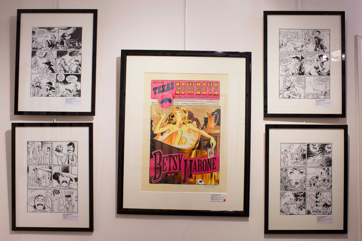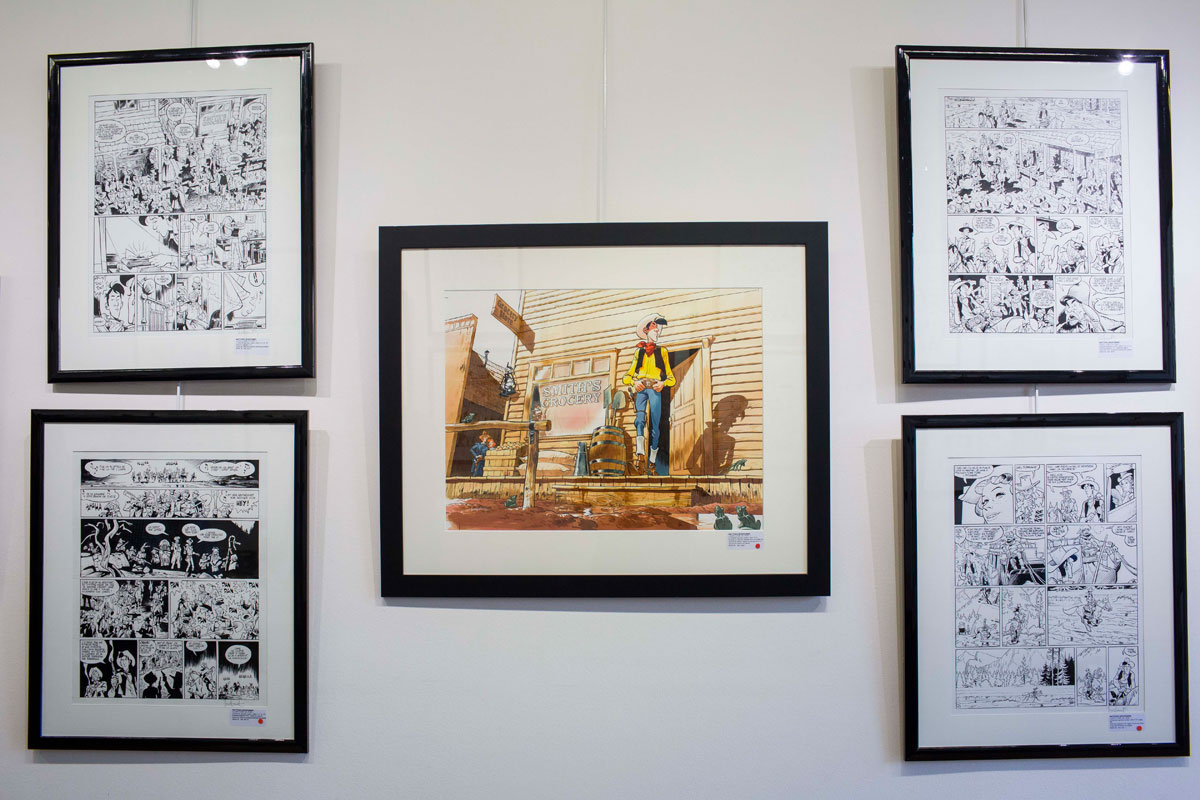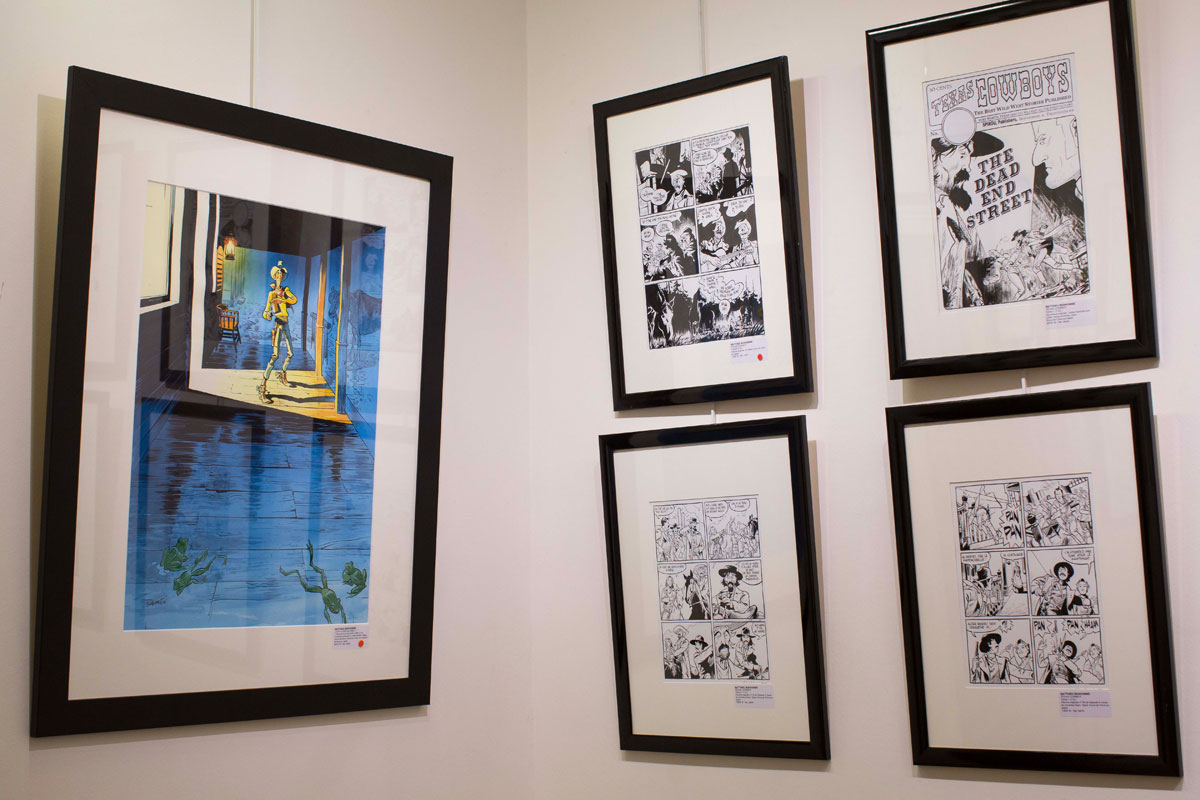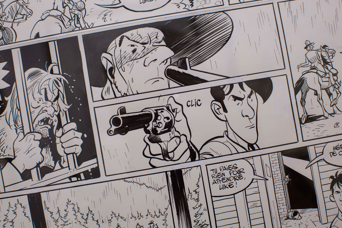 Cette exposition présentera une série de couvertures, une vingtaine d’illustrations couleur et noir et blanc, ainsi qu’une centaine de planches originales issues de Lucky Luke et Texas Cowboys (sc. Trondheim, éd. Dupuis).
