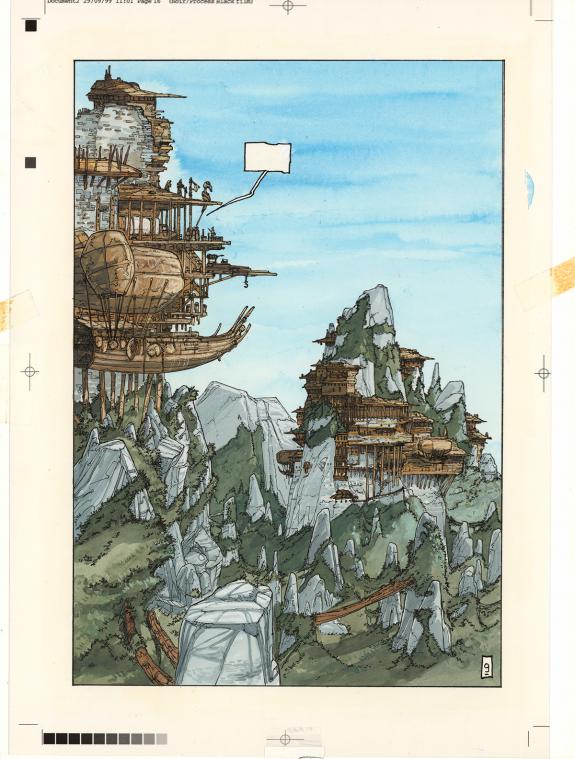 Planche originale n°09 accompagnée de son bleu de mise en couleurs à l'aquarelle sur papier