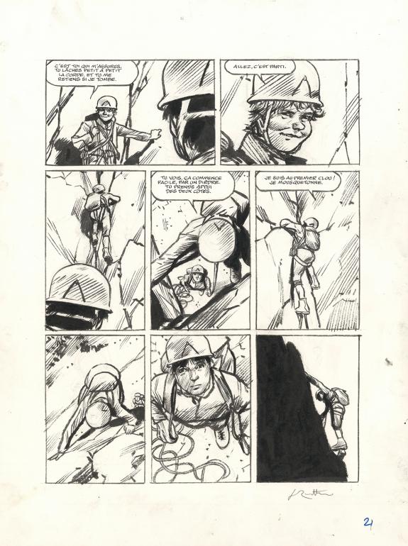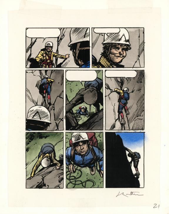 > Catalogue > Jean-Marc Rochette > Album(s) sans série > Ailefroide, altitude 3954 > Planche originale n° 021 accompagnée d'un bleu de mise en couleurs