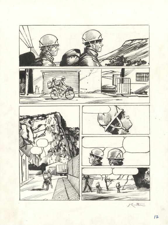 > Catalogue > Jean-Marc Rochette > Album(s) sans série > Ailefroide, altitude 3954 > Planche originale n° 017 accompagnée d'un bleu de mise en couleurs