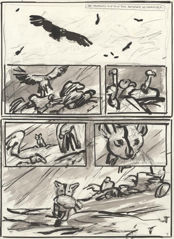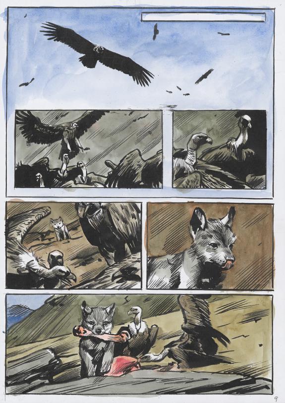 > Catalogue > Jean-Marc Rochette > Album(s) sans série > Le Loup > Planche originale n°9 accompagnée de sa recherche et de sa mise en couleur