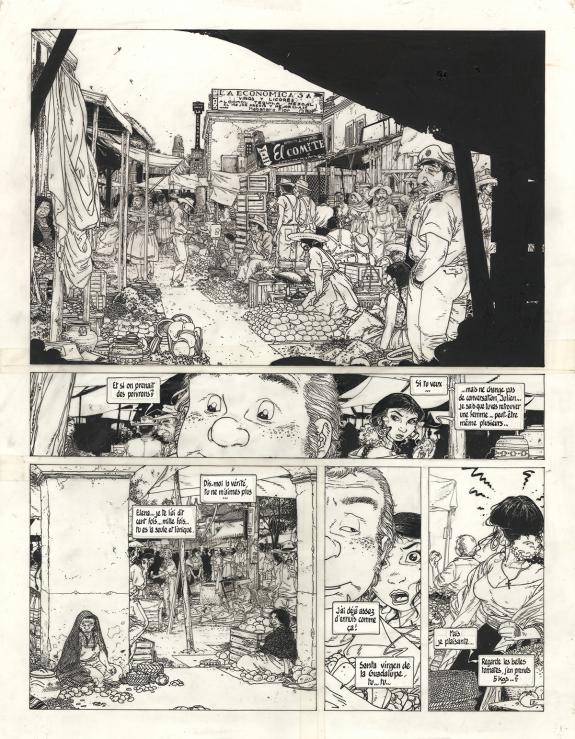 > Catalogue > Michel Plessix > Julien Boisvert > Jikuri > Planche originale n°8 accompagnée de sa planche préparatoire (aux phylactères collés) et planche préparatoire n°11 au verso