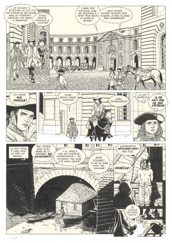 > Catalogue > Patrice Pellerin > L'Épervier > La Mission > Planche originale n°20 accompagnée de sa mise en couleur