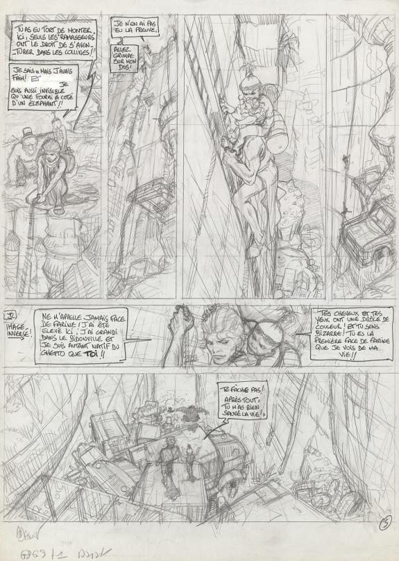 > Catalogue > Philippe Adamov > Dayak > Ghetto 9 > Planche originale n°05 accompagnée de son crayonné préparatoire