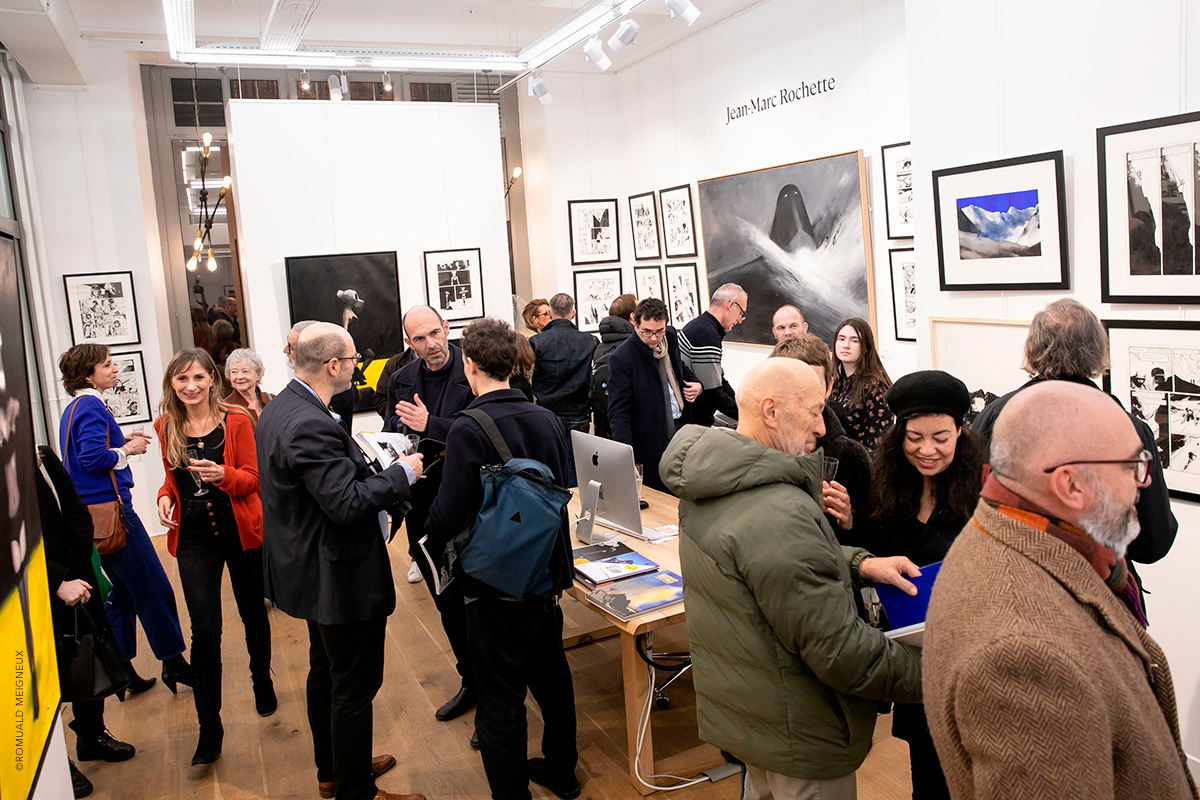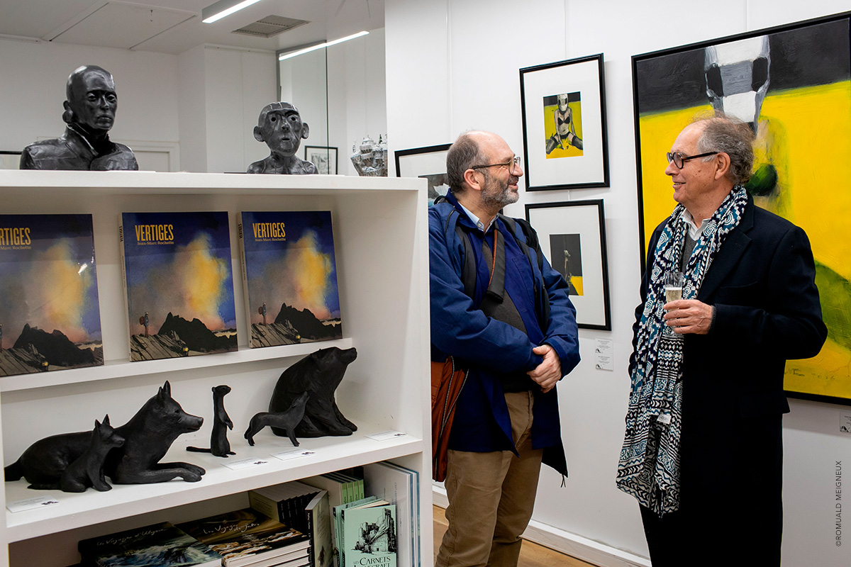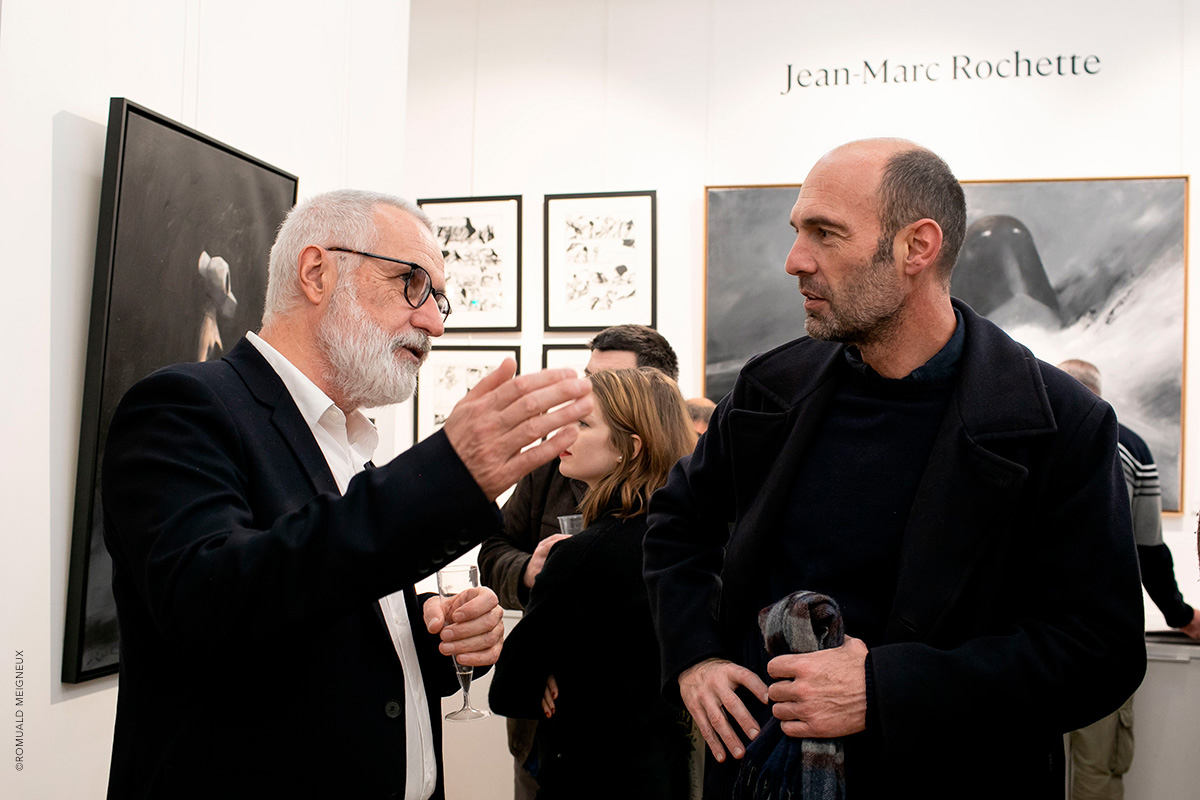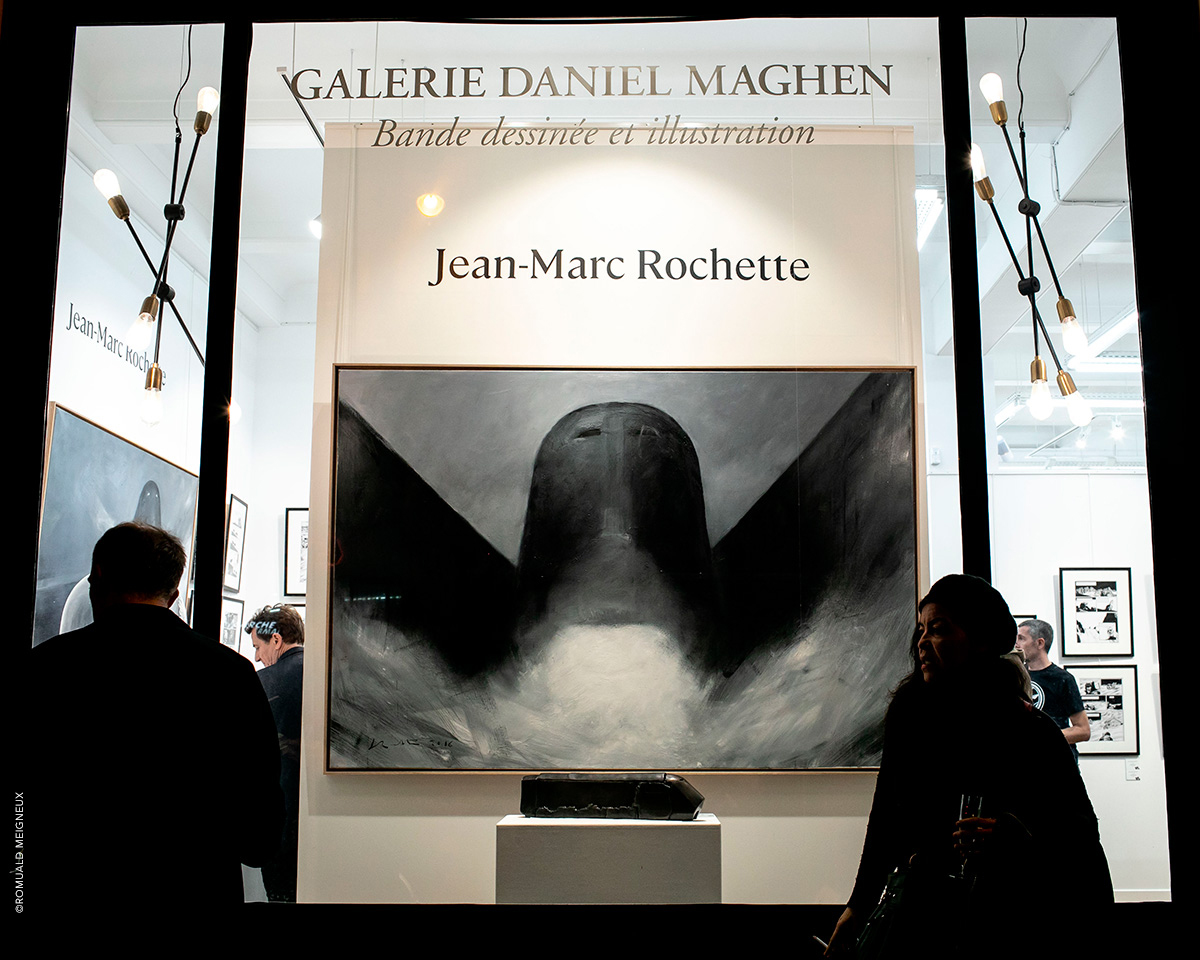 PROLONGATION DE L'EXPOSITION JUSQU'AU 1ER FÉVRIER 2020 La galerie Daniel Maghen a l’honneur de consacrer une vaste rétrospective à Jean-Marc Rochette, du 10 décembre 2019 au 11 janvier 2020, à l’occasion de la sortie de Vertiges, le tout premier artbook dédié à l’artiste (éd. Daniel Maghen). Près de 300 originaux de bande dessinée, peintures et sculptures ont été rassemblés pour cette exposition qui retrace la carrière engagée et écologique du dessinateur Jean-Marc Rochette, devenu un incontournable du 9e Art. Elle reprend son travail depuis 1982, année de parution du Transperceneige (Casterman), sur un scénario de Jacques Lob. Ce récit de science-fiction post-apocalyptique, prépublié dans la revue (À suivre), s’est imposé comme une pierre angulaire de la bande dessinée d’anticipation, et fut adapté au cinéma par le réalisateur sud-coréen Bong Joon-ho (Palme d’or 2019). L’incroyable puissance graphique de Rochette et sa science du noir et blanc incarnent parfaitement cette série mythique qu’il poursuit après la mort de Lob avec le scénariste Benjamin Legrand pour les deux albums : L'Arpenteur (1999) et La Traversée (2000), puis avec Olivier Bocquet pour Terminus (2015), et Matz pour Extinctions acte 1 (2019). Une sélection de planches, illustrations et couvertures issues de ces albums sera exposée aux côtés de grandes peintures et sculptures inspirées de l’univers de la série. L’exposition présentera également ses œuvres récentes à travers son sujet de prédilection : la montagne. Passionné d’alpinisme, Rochette a choisi de devenir dessinateur de bande dessinée après un accident qui a failli lui coûter la vie. En 2018, l’auteur, au sommet de son art, rencontre un grand succès critique et public avec Ailefroide, altitude 3954, récit autobiographique de ses années d’alpinisme, puis Le Loup (2019), récompensé récemment du prix Wolinski - Le Point 2019. Ses superbes planches noir et blanc sont le reflet d’une beauté sauvage à couper le souffle. Elles seront accompagnées dans l’exposition de magnifiques aquarelles de montagnes, peintures abstraites et sculptures animalières. Daniel Maghen, Jean-Marc Rochette et les éditions Casterman ont le plaisir de vous inviter au vernissage de leur exposition le jeudi 19 décembre, à partir de 19h.