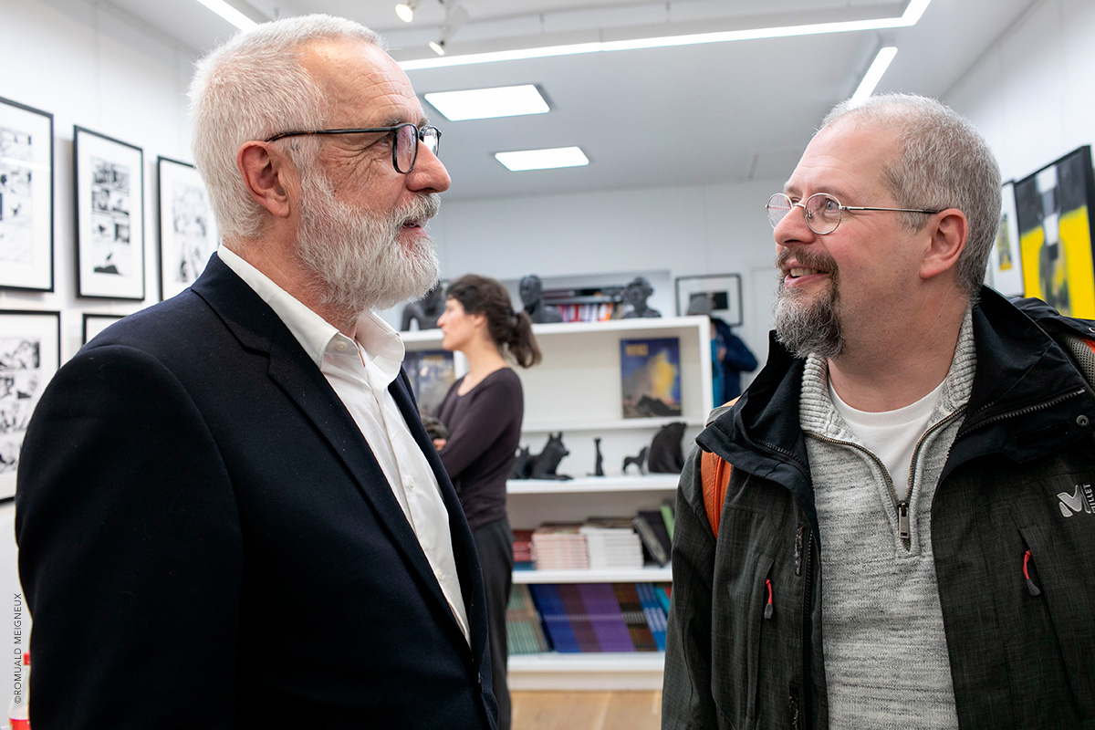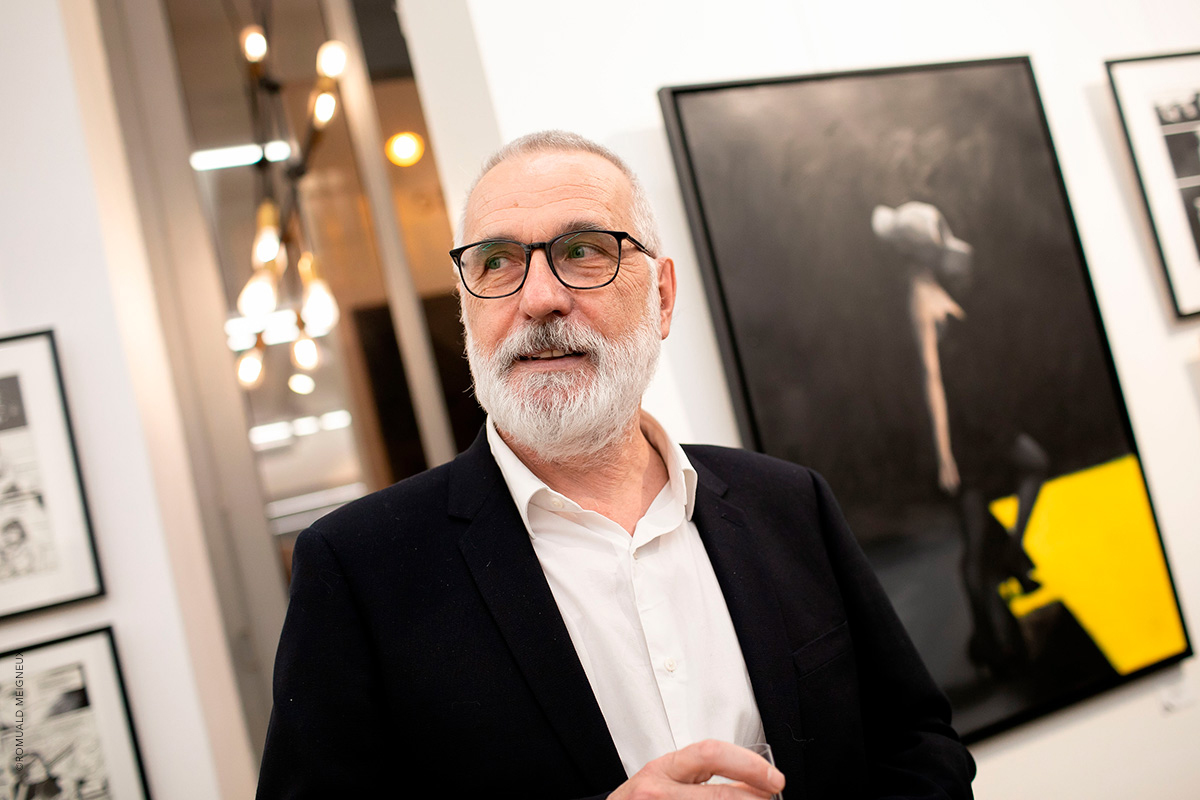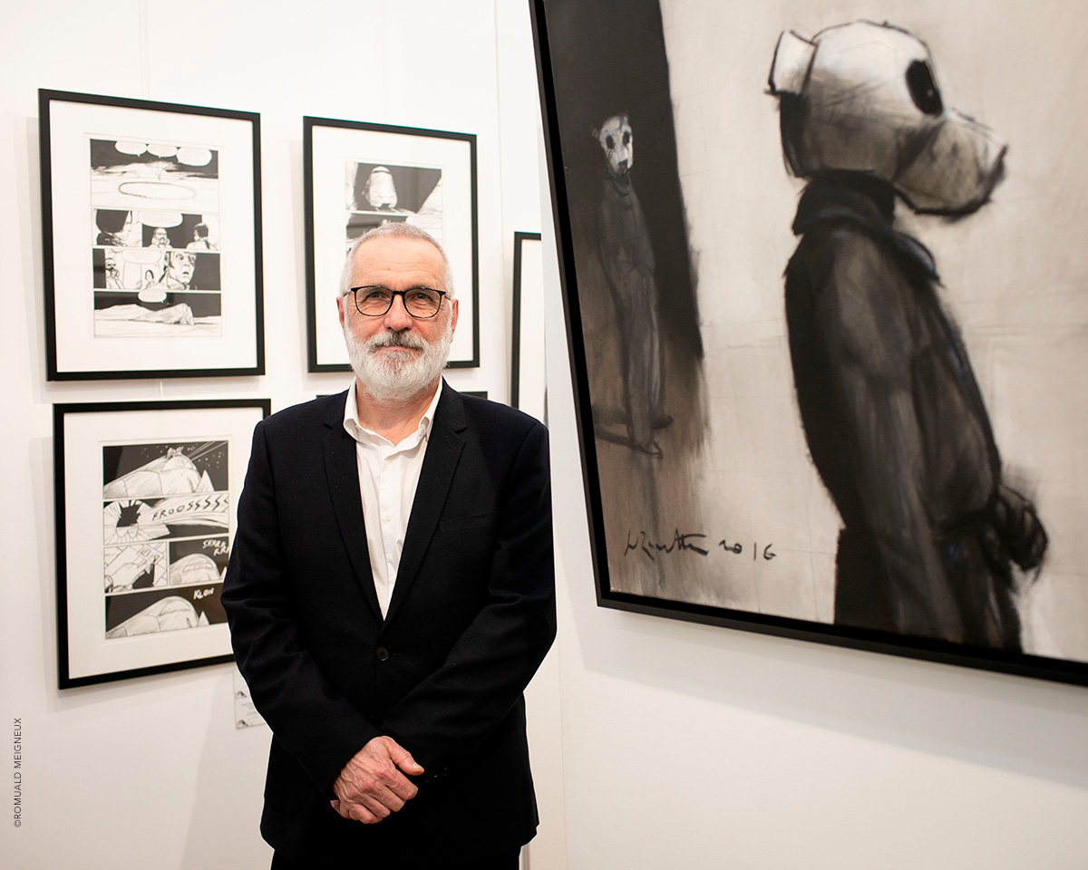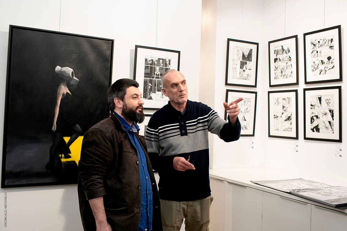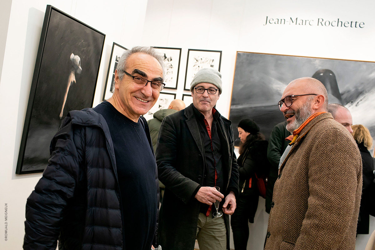 PROLONGATION DE L'EXPOSITION JUSQU'AU 1ER FÉVRIER 2020 La galerie Daniel Maghen a l’honneur de consacrer une vaste rétrospective à Jean-Marc Rochette, du 10 décembre 2019 au 11 janvier 2020, à l’occasion de la sortie de Vertiges, le tout premier artbook dédié à l’artiste (éd. Daniel Maghen). Près de 300 originaux de bande dessinée, peintures et sculptures ont été rassemblés pour cette exposition qui retrace la carrière engagée et écologique du dessinateur Jean-Marc Rochette, devenu un incontournable du 9e Art. Elle reprend son travail depuis 1982, année de parution du Transperceneige (Casterman), sur un scénario de Jacques Lob. Ce récit de science-fiction post-apocalyptique, prépublié dans la revue (À suivre), s’est imposé comme une pierre angulaire de la bande dessinée d’anticipation, et fut adapté au cinéma par le réalisateur sud-coréen Bong Joon-ho (Palme d’or 2019). L’incroyable puissance graphique de Rochette et sa science du noir et blanc incarnent parfaitement cette série mythique qu’il poursuit après la mort de Lob avec le scénariste Benjamin Legrand pour les deux albums : L'Arpenteur (1999) et La Traversée (2000), puis avec Olivier Bocquet pour Terminus (2015), et Matz pour Extinctions acte 1 (2019). Une sélection de planches, illustrations et couvertures issues de ces albums sera exposée aux côtés de grandes peintures et sculptures inspirées de l’univers de la série. L’exposition présentera également ses œuvres récentes à travers son sujet de prédilection : la montagne. Passionné d’alpinisme, Rochette a choisi de devenir dessinateur de bande dessinée après un accident qui a failli lui coûter la vie. En 2018, l’auteur, au sommet de son art, rencontre un grand succès critique et public avec Ailefroide, altitude 3954, récit autobiographique de ses années d’alpinisme, puis Le Loup (2019), récompensé récemment du prix Wolinski - Le Point 2019. Ses superbes planches noir et blanc sont le reflet d’une beauté sauvage à couper le souffle. Elles seront accompagnées dans l’exposition de magnifiques aquarelles de montagnes, peintures abstraites et sculptures animalières. Daniel Maghen, Jean-Marc Rochette et les éditions Casterman ont le plaisir de vous inviter au vernissage de leur exposition le jeudi 19 décembre, à partir de 19h.