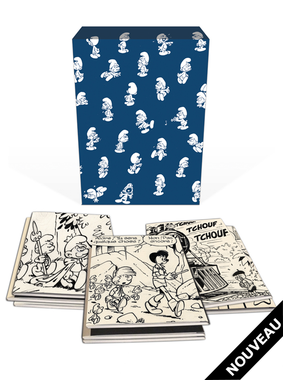 Ces exemplaires réunissent sous emboîtage les sept chapitres de ce volume sous la forme de carnets séparés imprimés sur papier Munken, ainsi qu’un huitième carnet reprenant en fac-similé les 42 pages originales du minirécit Les Schtroumpfs noirs, ainsi que les suppléments, posters et mini-récits parus dans