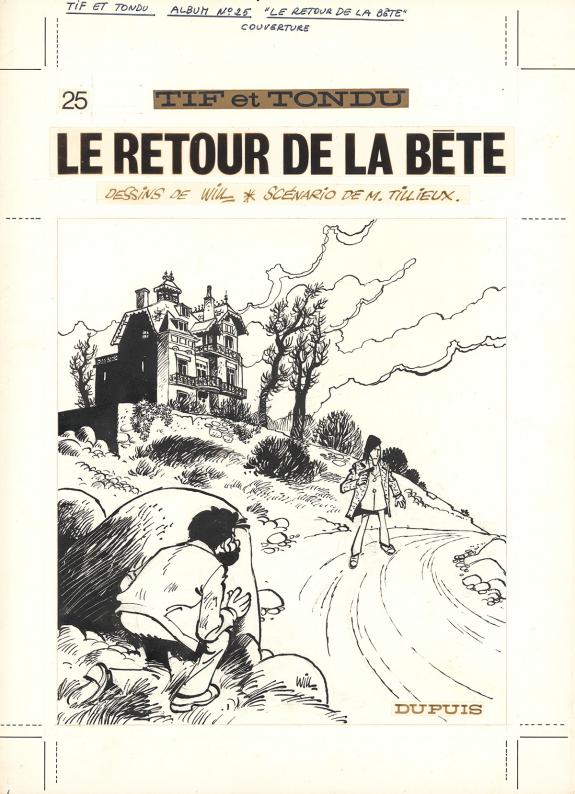 > Catalogue > Will > Tif et Tondu > Le Retour de la Bête > Couverture originale, prépubliée dans Spirou n°1988 paru en 1976. L'illustration de couverture a été montée sur une maquette de l'album